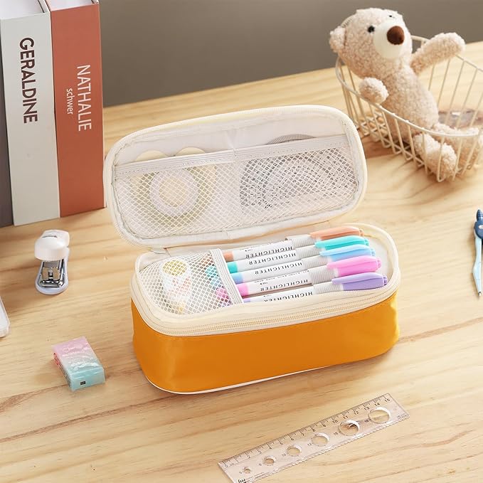 Big Pencil Case Large Capacity Pencil Bag with Zipper Pencil Pouch for Girls Boys Kids Adults Stationery Pencil Pen Case Organizer for School Office Yellow