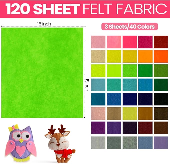 - Abundant to Use and Share: you will receive 120 pieces of felt fabric sheets in 40 colors, 3 pieces per color, sufficient to satisfy your daily DIY, replacing and crafting needs, allowing you to share with your family members and friends