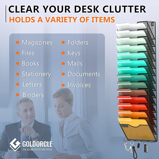 - 【Zero assembled】The wall mounted file folder organizer comes ready for us and it is also easy to hung up on the wall. No Assembly Required