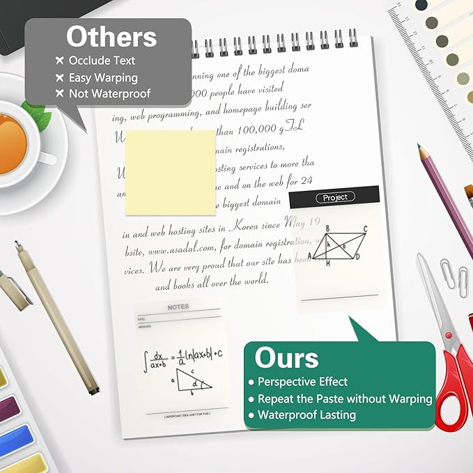 - 【Wide Range of Applications】This transparent note is suitable for a variety of scenarios, which is very suitable for students, teachers, and workers. You can use it in the office, study room or home with 100% adhesion on smooth surfaces.
