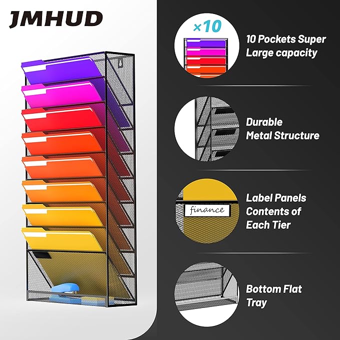 - [10 Tier Wall File Organizer] Our organizer features a spacious 10-tier structure design, perfectly accommodating letters, A4 documents, books, bills and various other items. Its large-capacity compartment design keeps frequently used items within easy reach, helping you effortlessly enhance work efficiency.