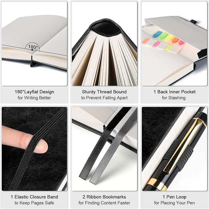 - 【Tough & Stylish Hardcover】Crafted from TOP-NOTCH VEGAN LEATHER with distinctive patterns, which is animal-friendly and boasts a luxurious look. DURABLE hard cover provides superior protection to your pages compared to softcover, while offering a stable writing surface. Featuring an innovative thread-bound binding that allows for easy LAY-FLAT use, catering to both left- and right-handed users.