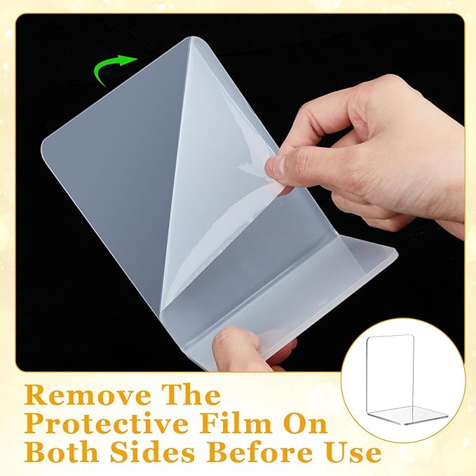 - Protective Film Design: each of the clear book holders has a layer of frosted film to guard the books from being scratched; Please remember to tear off the protective films before use
