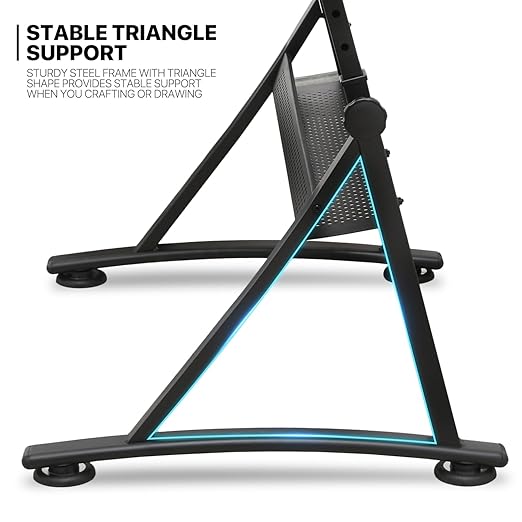 - More Stable - The drawing table boasts a steel tube frame structure with a triangular leg design that provides optimal stability and durability. This design ensures that the table remains stable and secure, even when working on complex and detailed projects, making it an ideal workspace for artists and designers.