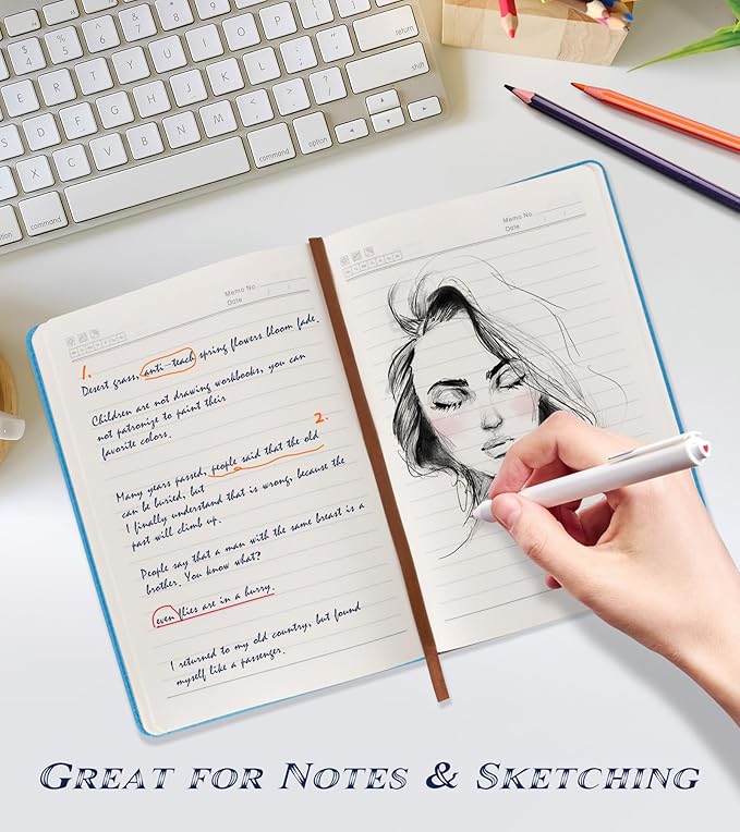 - 【180° Lay Flat Design】The 180° lay flat design makes writing easier, reading more convenient, and taking notes more efficient.At the same time, the hardcover notebook is designed with elastic closure band to make it tightly closed to protect your content, and the inner paper will not be curled and kept flat.