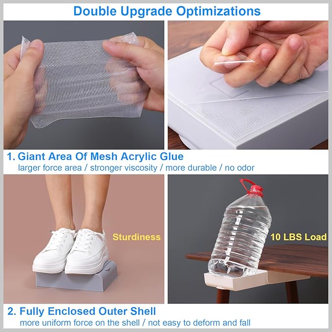 - Made of high quality ABS material and enhanced mesh acrylic glue. It's strong and durable. Easy to install under desk. Size: L 8inch * W 6inch * H 2inch