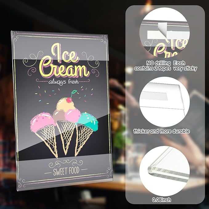 - Versatile: the acrylic sign holder 8.5 x 11 inches wall mount can be applied in the following scenarios, such as displaying ads, menus, photos, brochures, wedding paper and more; The sign holder can be applied in offices, restaurants, shops, schools, churches, exhibitions, hotels, etc.