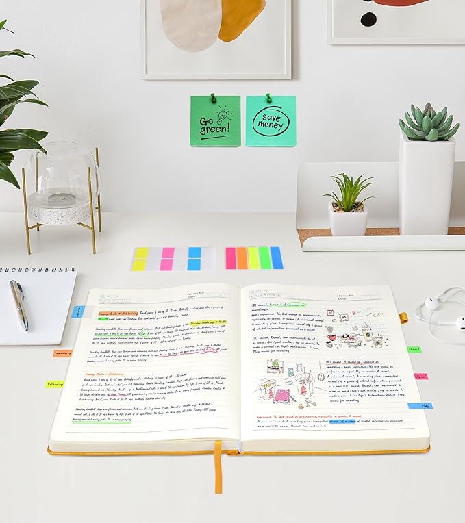 - 【180°Lay Flat Journal Notebook】The 180° lay flat design makes writing easier, reading more convenient, and taking notes more efficient.At the same time, the hardcover notebook is designed with1 elastic closure band & 1 elastic bookmark band. to make it tightly closed to protect your content, and the inner paper will not be curled and kept flat.