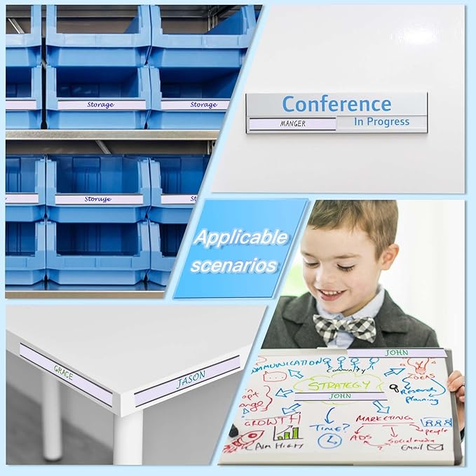 - Easy to use: write on the included paper strip, slide in the paper insert and the transparent protective film, stick the magnetic label holder to clean and flat surface, saving time and making reposition easier compared with traditional adhesive labels