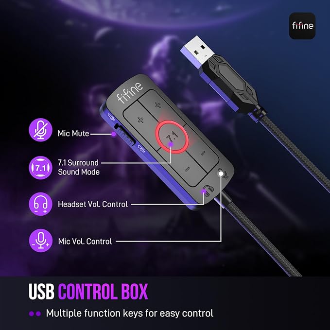 - [Immerse in Soundscapes] 7.1 surround sound makes audio details come to life. The FIFINE H9 headset envelop you in a immersive gaming aura that transcends reality. 50mm driver reverberates every explosion, gunfire and environmental sound in intense gaming through your gaming headset for PC. The Wired headset for gaming pull you to get more achievement and improve the accuracy of FPS and ARPG.