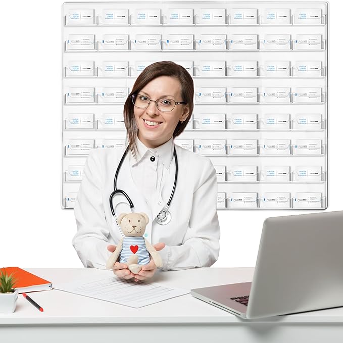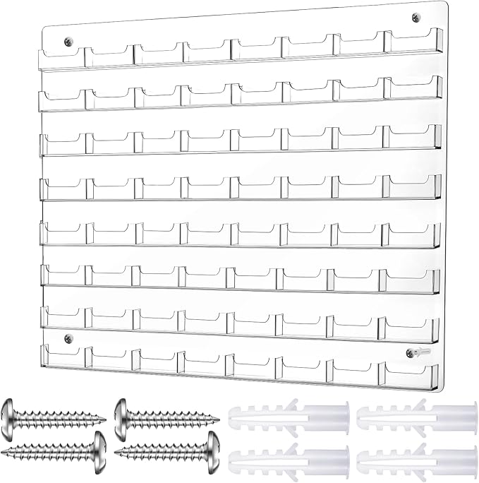Hillban Acrylic Business Card Holder Wall Mount Clear Sticker Display Rack Multiple Card Holders Clear Acrylic Organizing Sticker Display Stand Pre Drilled(64 Pockets)