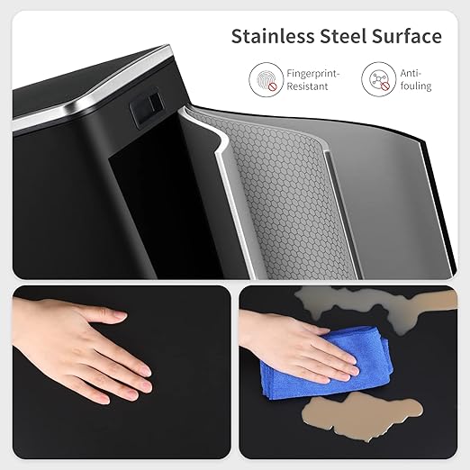 - DURABLE&STYLISH: Trash can is made of durable and fingerprint-proof stainless steel, which is easy to clean and maintain. High-quality thick 410 stainless steel has a capacity of 16 Gallon/60-Liter, perfect for homes, offices, and other spaces with high waste generation.