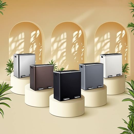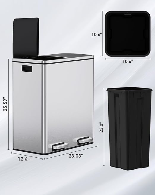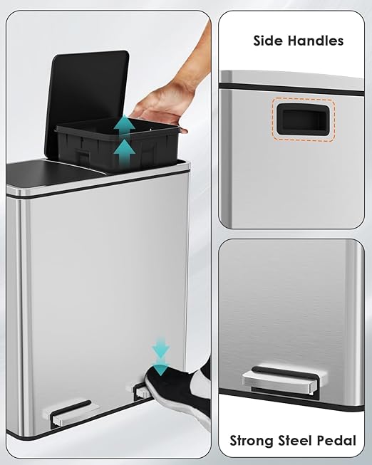 - 2*8 GALLONS COMPARTMENTS: Trash can has two independently compartments for trash and recyclables, making it easy to sort waste.