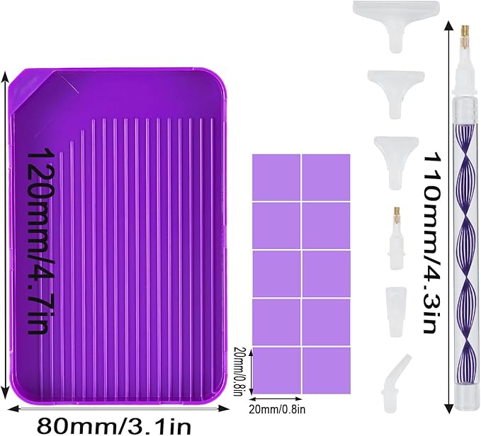 - 【Variety Practical Tool】1*Diamond trays,10*Glue clay,1* Replacement Pen(1 X tip,1 X elbow pen tip,1 X 3/6/9-diamonds bit).