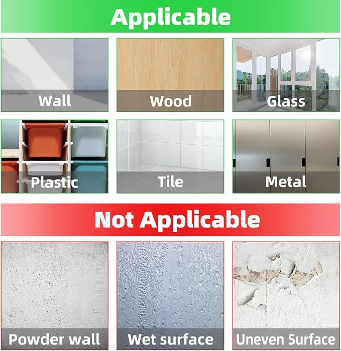 - SUITABLE FOR SMOOTH SURFACE-The self-adhesive frames is suitable for walls, wood, glass, plastic, marble, ceramic tiles, metal, and other materials with smooth surfaces, used in office, home, school, elevator, shop, factory, building. Not suitable for damp surfaces, powdery walls, and painted surfaces.
