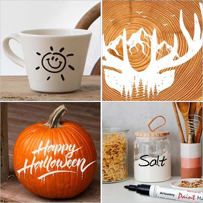 - 【Multipurpose】These wonderful paint pens can be used on multiple surfaces, such as rock, ceramic, wood, leather, plastic, fabric, canvas, stone, glass, metal, chalkboard craft supplies etc
