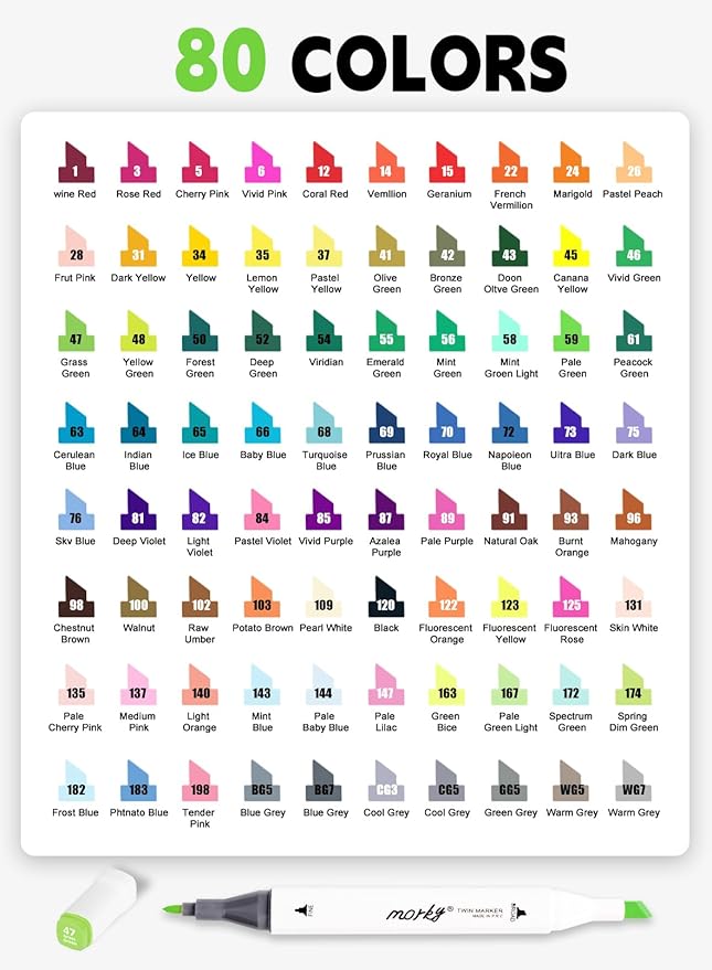 - CONVENIENT STORAGE BAG PACKAGING: This alcohol markers set includes alcohol-based markers with chiesl tips, a marker case, and a coloring card. Our markers are ASTM D-4236 certified for safety and reliability, and the storage bag packaging makes it easy to take your markers with you wherever you go