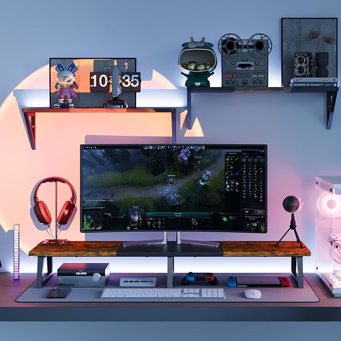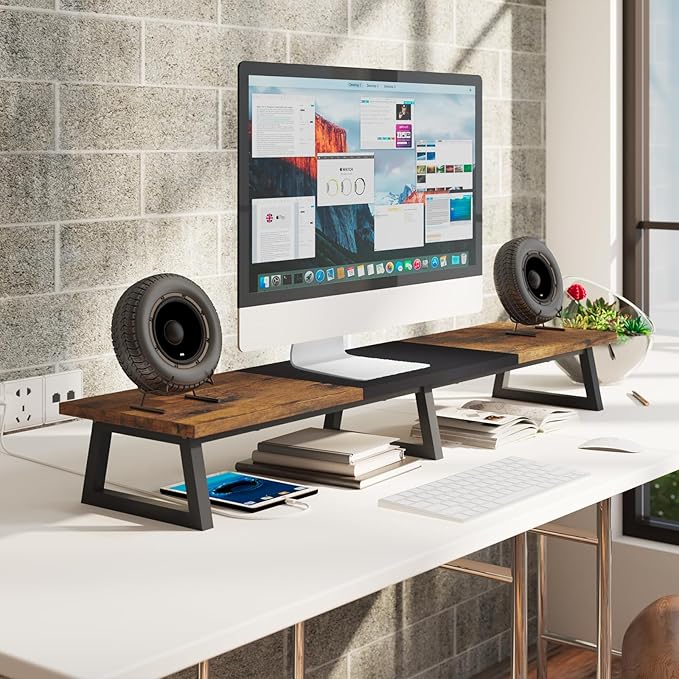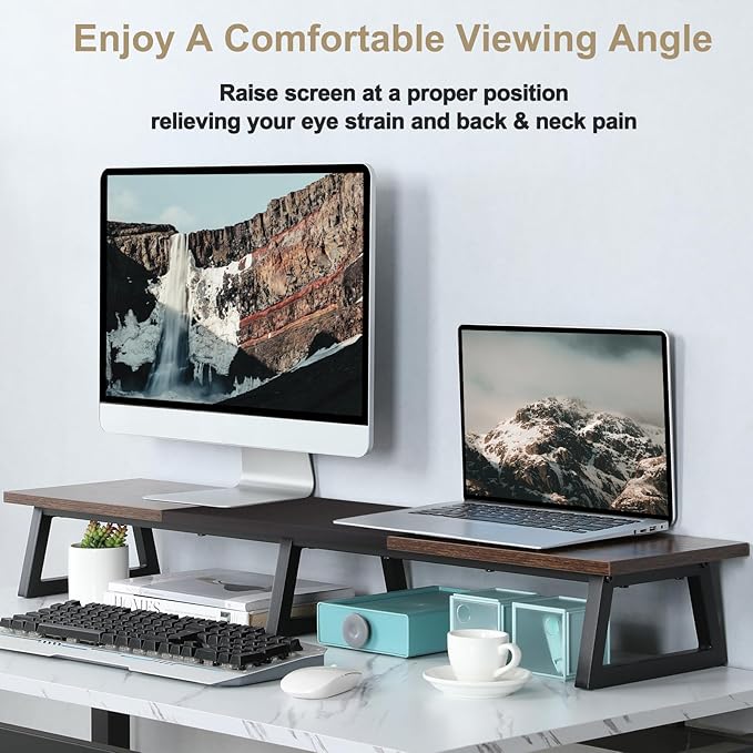 TEAMIX 42 inch Large Dual Monitor Riser, Extra Long Monitor Stand Riser Wide TV Stand Riser Monitor Stand for 2 Monitors Wood & Steel Desktop Riser Desk Organization Home Office