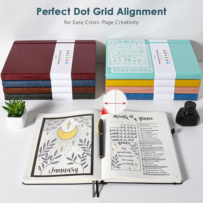 - 【Tailored for Bullet Journaling Lovers】Our UPGRADED dot journal notebook includes SPECIFIC FEATURES such as index, key, and test pages, making it stand out in the market, surpassing other ordinary dotted notebooks. The thoughtful design is perfect for both green-hand and experienced journalists. Your ideas deserve a notebook as professional as this.