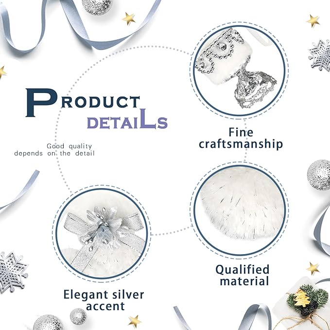 - [Unique Design]This pretty white Christmas decorations contains multiple styles like Christmas ball ornaments and star Christmas ornaments. Silver ribbon and pearl trim show the grace and elegance. It is the very Christmas ornaments set that you can not miss