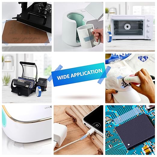 - 【WIDE APPLICATION】:Our heat tape performs well compatibility in different industries! Heat resistant tape can withstand the heat of the heavy-duty heat press, it's not only suitable for sublimation on cups but also ideal for 3D printers and heat transfer vinyl on various fabrics. This heat transfer tape is also widely used in the electronics industry for electrical insulation of transformers, motors, coils, capacitors