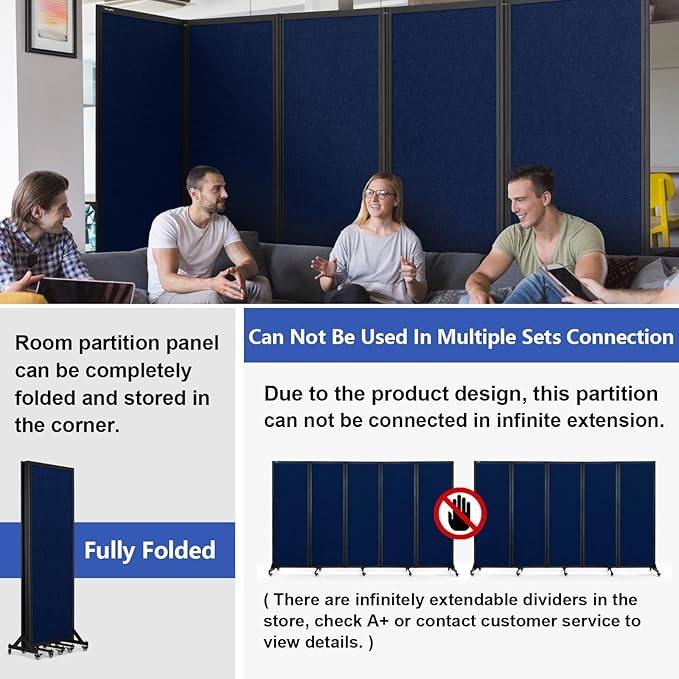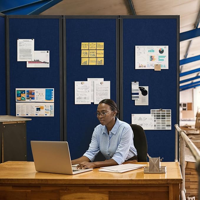 Room Partition,Folding Privacy Divider,Office Partition Dividers,Office Dividers Wall, 10'6"W x 6'7"H,Blue