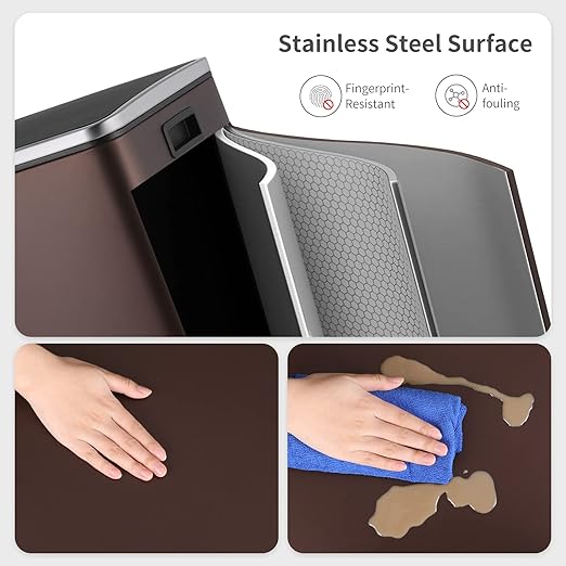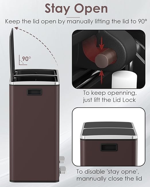 - 2*8 GALLONS COMPARTMENTS: Trash can has two independently compartments for trash and recyclables, making it easy to sort waste.