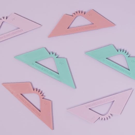 - 🔎DETAILS: They are made of high quality material, which allows us to use directly on them both a cutter and a scalpel or any other cutting tool. In addition, two sizes of rulers are available, 1/4“ and 1/2”. Available in pink, turquoise and purple.