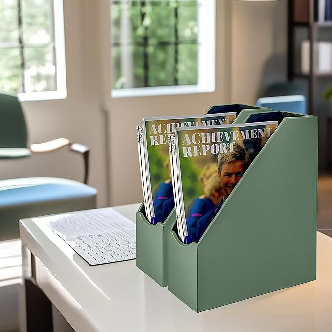 - π Versatile use: Our magazine file holder can be used in various settings like offices, libraries, and homes, home-offices, to store and display magazines, catalogs, pamphlets, notebooks, mails and other documents, to keep files sorted and easily accessible