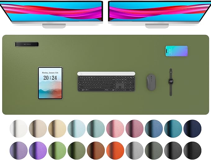 Aothia Leather Desk Pad Protector, Mouse Pad, Office Desk Mat, Non-Slip PU Leather Desk Blotter, Laptop Desk Pad, Waterproof Desk Writing Pad for Office and Home (48"x17", Olive Green)