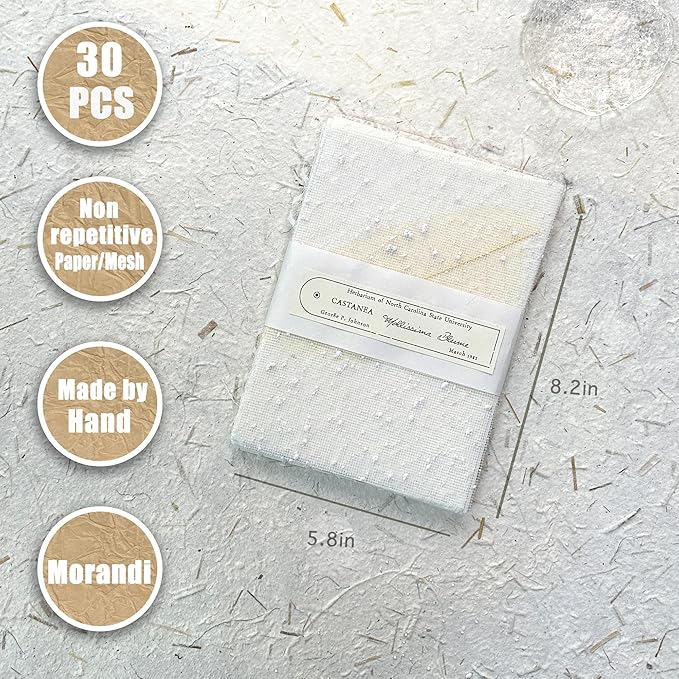 30 sheets A5 Unique Textured Scrapbook Paper&Mesh Fabric set - Handmade Craft Mulberry Special Paper Mix for Wedding Bridal Scrapbooking Junk Journaling Supplies Card Materials Collage, 5.8x8.2 Inches