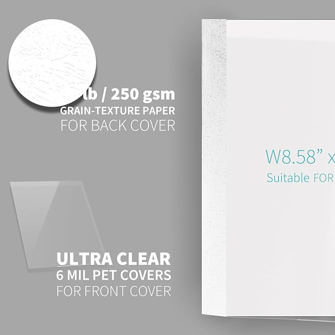 - Clear Front Cover: Crafted from 6 Mil Polyethylene Terephthalate (PET) material, these covers offer exceptional transparency compared to PVC. This enhanced clarity allows the top page to be displayed more vividly. They are non-toxic, tasteless, and entirely safe.