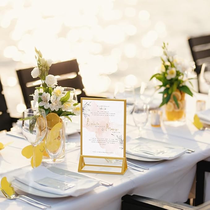 Acrylic Sign Holder 5X7 Gold Picture Frame,Double Sided Clear Display Stand , Table Acrylic Stand for Home Office Shop Restaurant (4pcs)