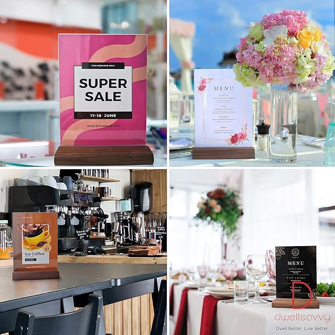 - STURDY WALNUT WOOD BASE - Each Sign Holder showcases the natural beauty of 100% Walnut wood, with its beautiful grain. The rich aesthetics of the wood base enhance the overall appeal of the Tabletop Sign Holder, adding an elegant touch to any setting.