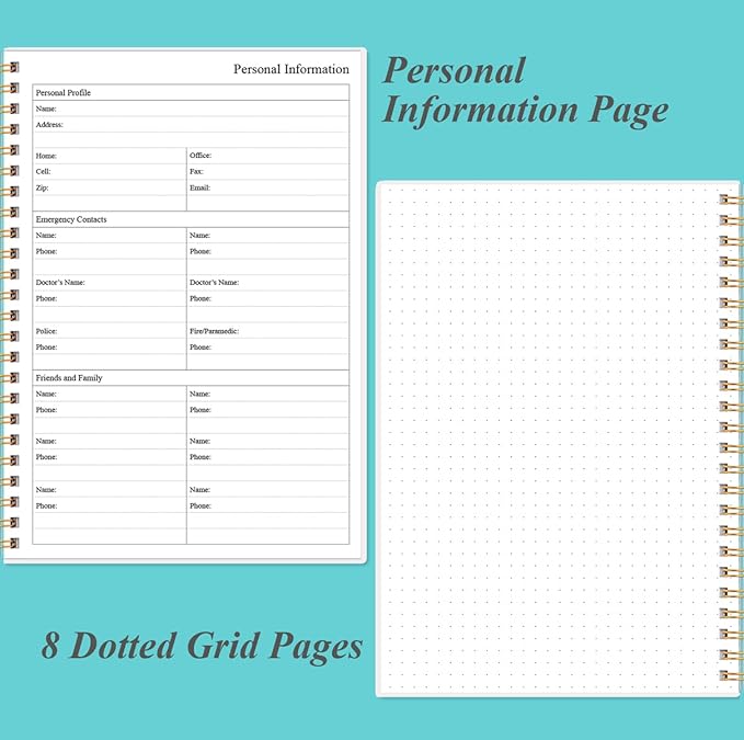 - A5 SIZE - This undated daily organizer size of 8.5 x 5.8 inch, perfect size to fit in your bag.1 quick reference page, contact pages, important dates page, and 75sheet (150 page) daily plan & notes,8 dotted grid pages, Undated appointment planner makes it easy for you to start the planner at any time.