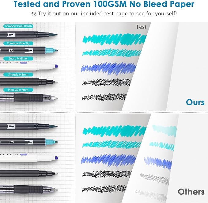 - 【Thick Paper for Writing Without Limits】Large A5 hardcover notebook (5.75"x 8.38"/145mm x 215mm), total 320 pages, includes 312 numbered pages(equal to 156 sheets). 5 x 5mm graph grid paper(5 squares per inch). Our INNOVATIVE PAPER TECHNOLOGY on 100GSM thick paper ensures a perfect canvas for your ideas - no bleed, no ghosting, as confirmed by tests with various pens.