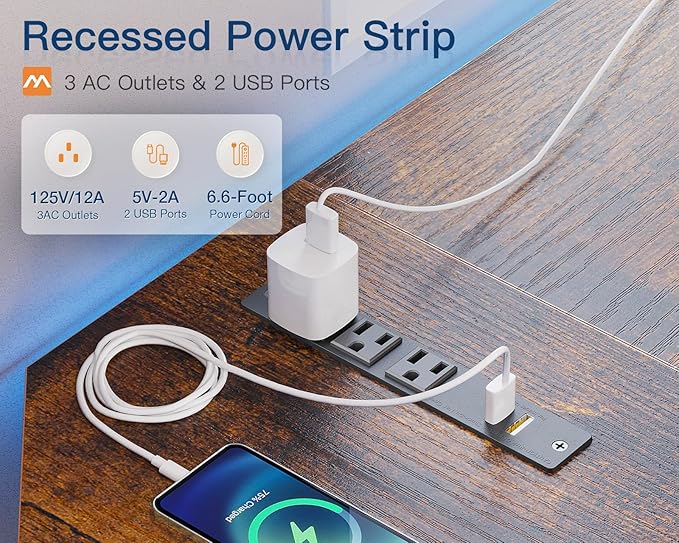 - 【USB Charging Ports & Power Outlets】: The l shaped computer desk features 3 standard plug outlets and 2 USB ports, allowing you to conveniently charge your laptop, smartphone, tablet, printer and gaming devices while you work or play games.