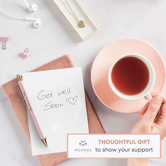 - Smooth Writing Experience: Mesmos Get Well Soon Pastel Pen Set Series writes smoothly with premium black ballpoint ink made from Germany along with precision 1mm medium tip crafted in Switzerland. Ideal get well gifts for women who love a seamless writing journey.