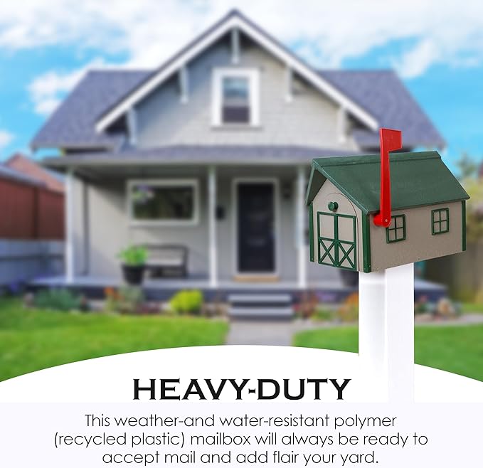 Peaceful Classics Poly Mailbox- Durable, Weather-Resistant Amish Craftsman Mailboxes for Outside Uses Like Front Yard & Road Side- Long-Lasting, Decorative, Modern Mailbox (Clay w/Green Trim & Roof)