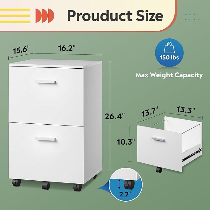 - 【Ample Storage Space】This 2-drawer file cabinet is equipped with a sturdy, adjustable metal rod suitable for hanging Letter/A4 size folders, capable of supporting a full load. It can function as a printer stand, with 2 spacious drawers providing ample room for printer paper or sundries. Additionally, it can serve as a bedroom vanity for household essentials.