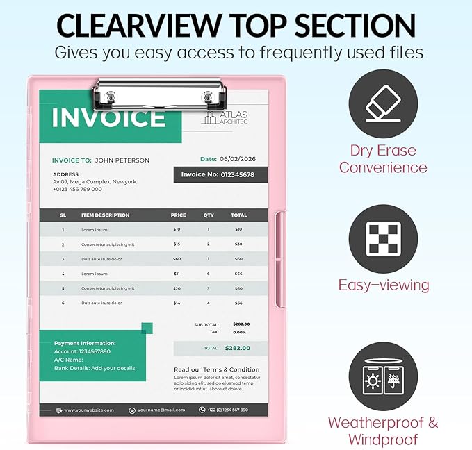- Smooth Writing Surface: Each clipboard is made of solid plastic to give a hard, flat and smooth writing surface that makes it simple to take notes, jot down ideas, and brainstorm comfortably without a desk