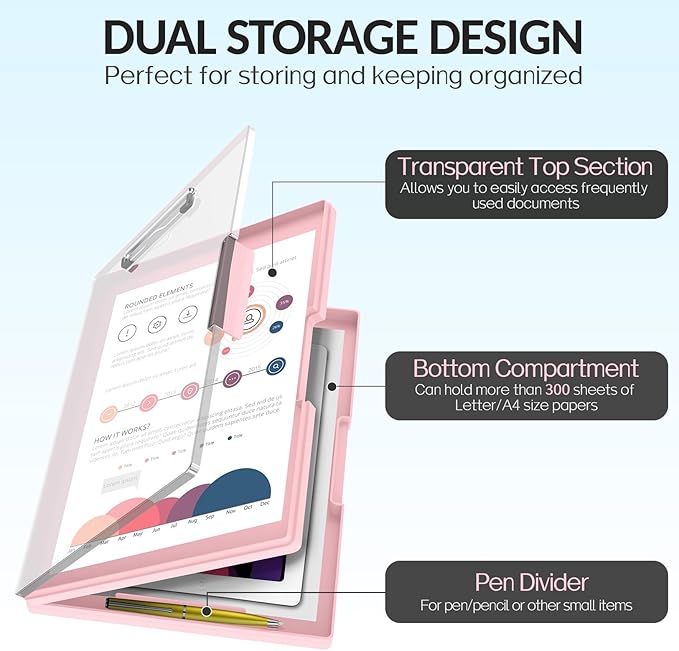 Sooez Clipboard with Storage, Heavy Duty Cleaview Clip Boards 8.5x11 with Dual Storage, Dry Erase Plastic Nursing Clipboard, High Capacity Clipboards Folder for Teacher Nurse, School & Office Supplies