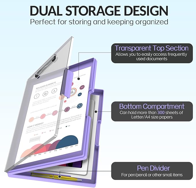Sooez Clipboard with Storage, Heavy Duty Cleaview Clip Boards 8.5x11 with Dual Storage, Dry Erase Plastic Nursing Clipboard, High Capacity Clipboards Folder for Teacher Nurse, School & Office Supplies