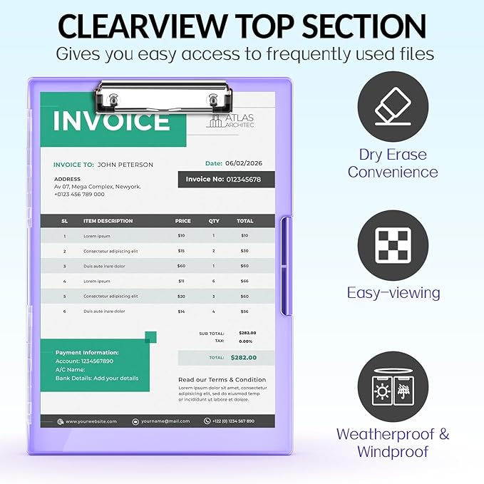 - Smooth Surface: Each clipboard is made of solid plastic to give a hard, flat and smooth writing surface that makes it simple to take notes, jot down ideas, and brainstorm comfortably without a desk