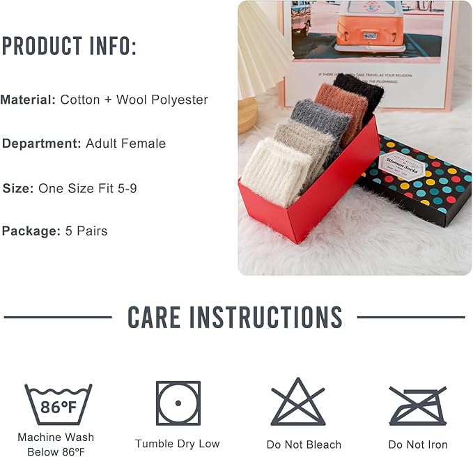 • 【Ideal Gift Choice】These winter wool socks are packed in exquisite gift boxes and are perfect gifts for women, mom, friends, wife, girlsfriend. Best womens gifts for their birthday and other festvial, including Valentine's Day, Mother's Day, Thanksgiving, Halloween, Christmas, and New Year.