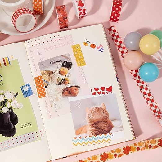 - 🌈Decorative masking DIY tapes: perfect for decorating your scrapbook, bullet journals, photo albums, day-planner, diaries, postcards, cards, file folders, envelopes,wrapping, wall, gifts, any crafts and more!