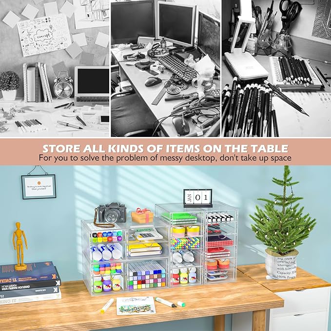 - High-quality Acrylic, Dustproof: This clear drawer storage is dust proof and waterproof, and can protect the items we put away from dust and water. In addition, the desk organizer is made from shatterproof plastic. The sturdy, transparent and fashionable design is compatible with decoration of any rooms. PLEASE DO NOT PUT IN DISHWASHER. Easily clean with soap and warm water.