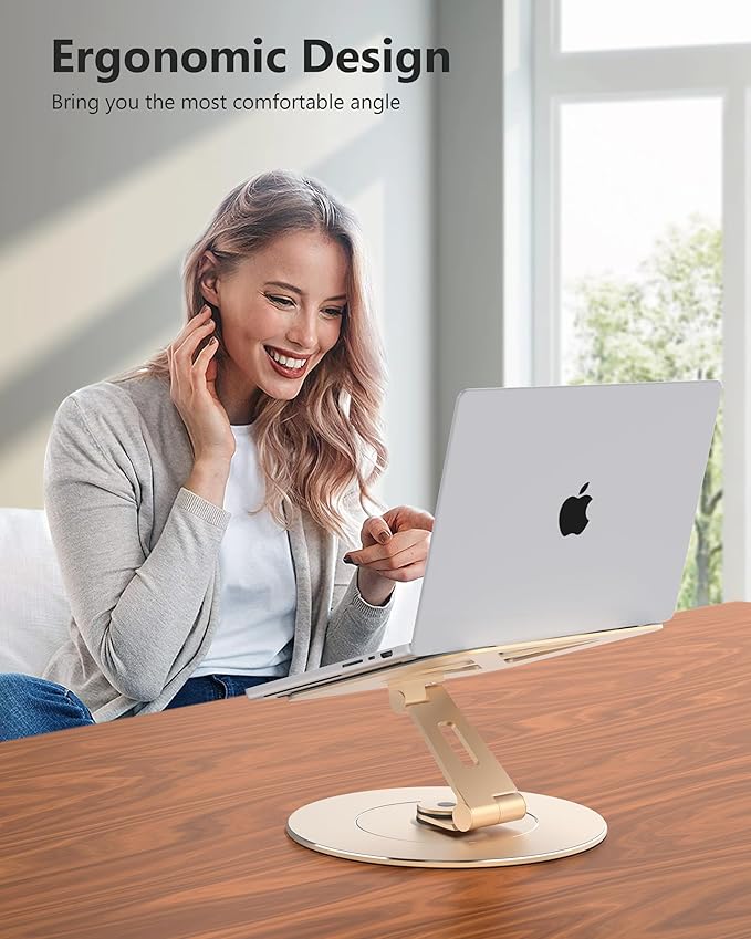 - [Ultra-Stable] - Thanks to military-grade aluminum alloy multi-layer reinforcement, 300% large base stability, anti-loosening structure, CNC engraving technology, loxp swivel laptop stand for desk is more stable and fashionable.