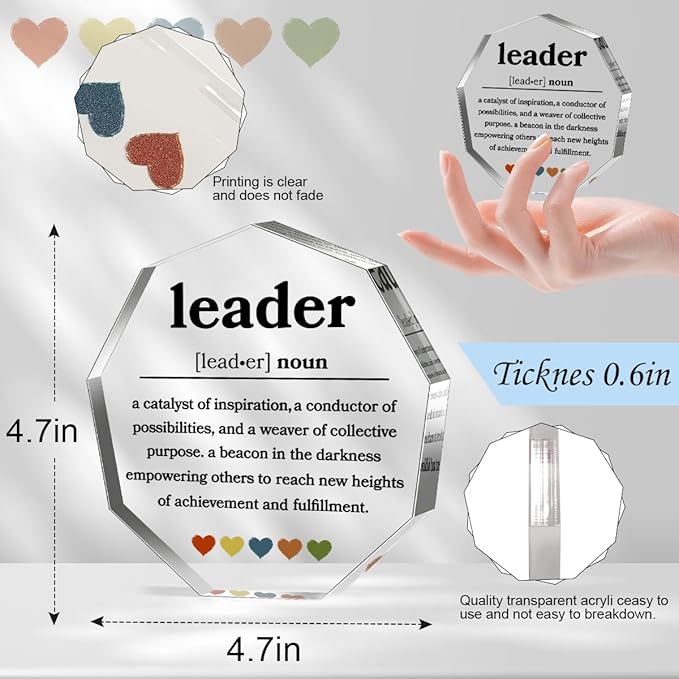 - 【Thank You Gifts for Leader】 The LEADER gift is made of quality acrylic, with clear printing and smooth surfaces, solid in structure and not easily break, which is reliable and reusable, and not easy to fade, it can keep in a good condition for a long time. A thank you gift for LEADERS on Christmas, birthday, retirement, going away, Thanksgiving, Boss's Day, etc.