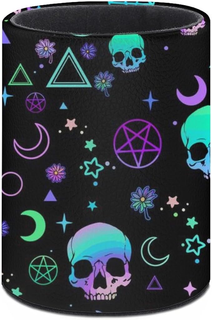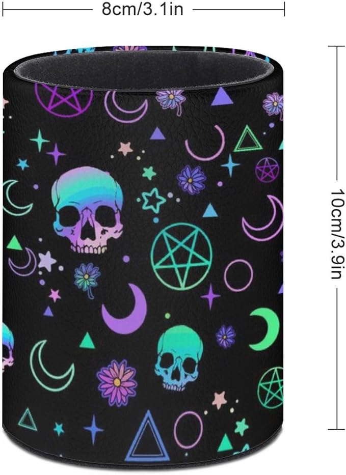 Magic Skull Pen Holder Pencil Organizer Cute Pencil Cup Desk Decor Makeup Brush Holder PU Multifunctional Office Suppliesfor Home Classroom School